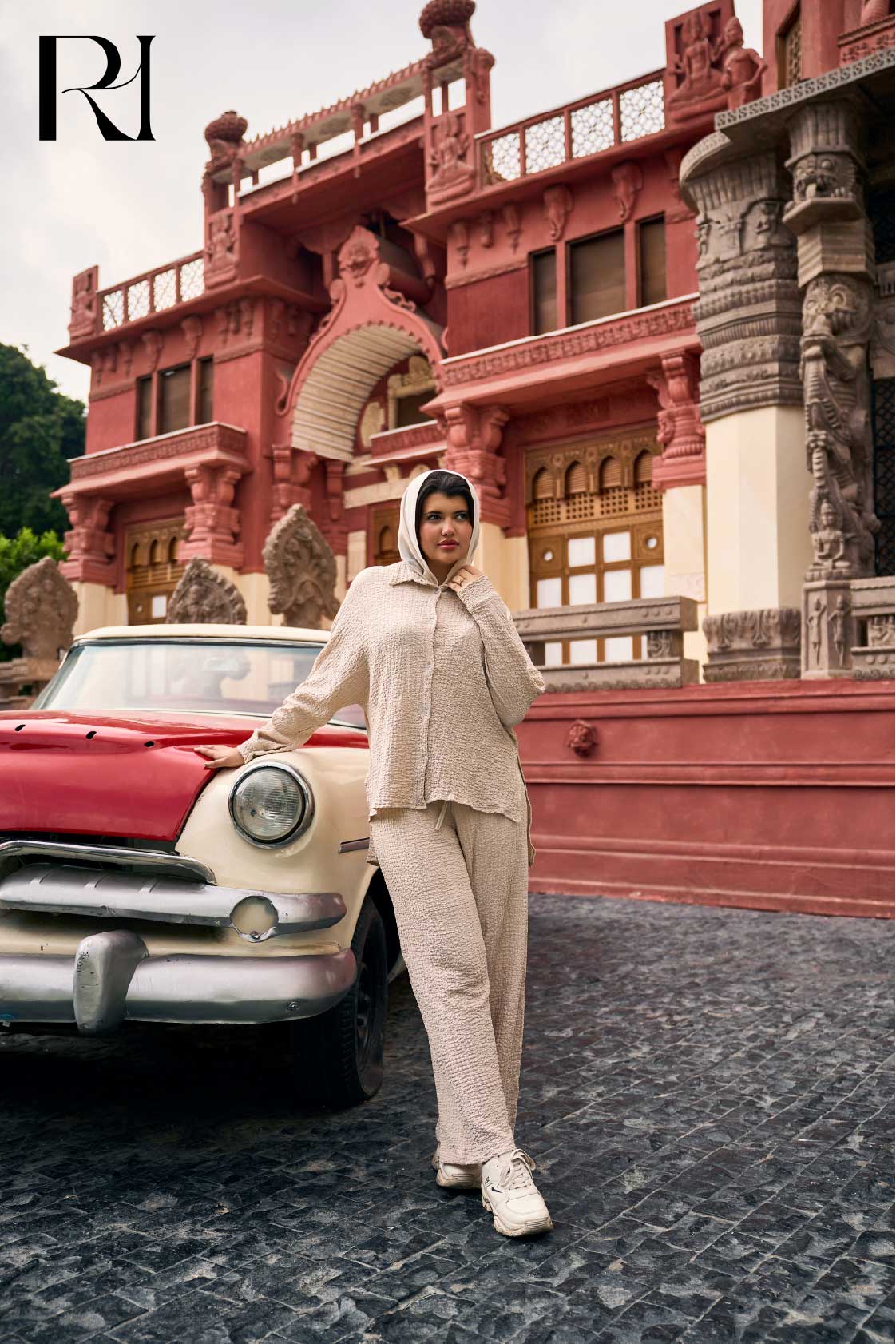 Step into modern ease with this beige textured co-ord set, blending relaxed sophistication with everyday comfort. Designed for the woman who values effortless style, it’s a versatile piece that transitions seamlessly from casual outings to refined gatherings.