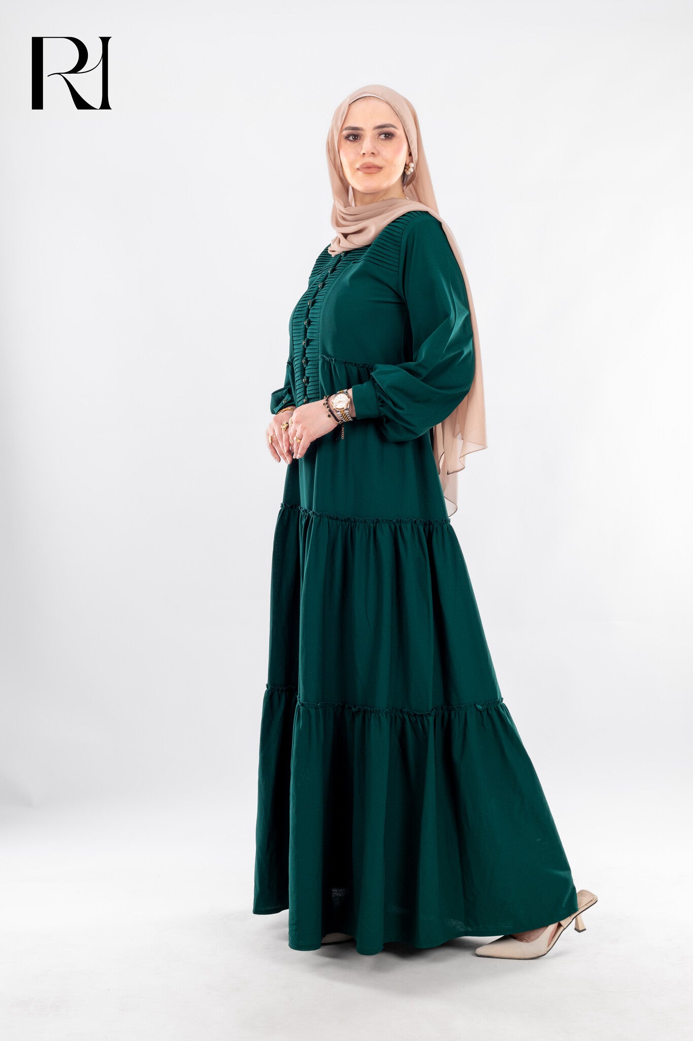 This elegant emerald green dress blends timeless charm with modern femininity a full length silhouette with delicate details that move gracefully with every step.